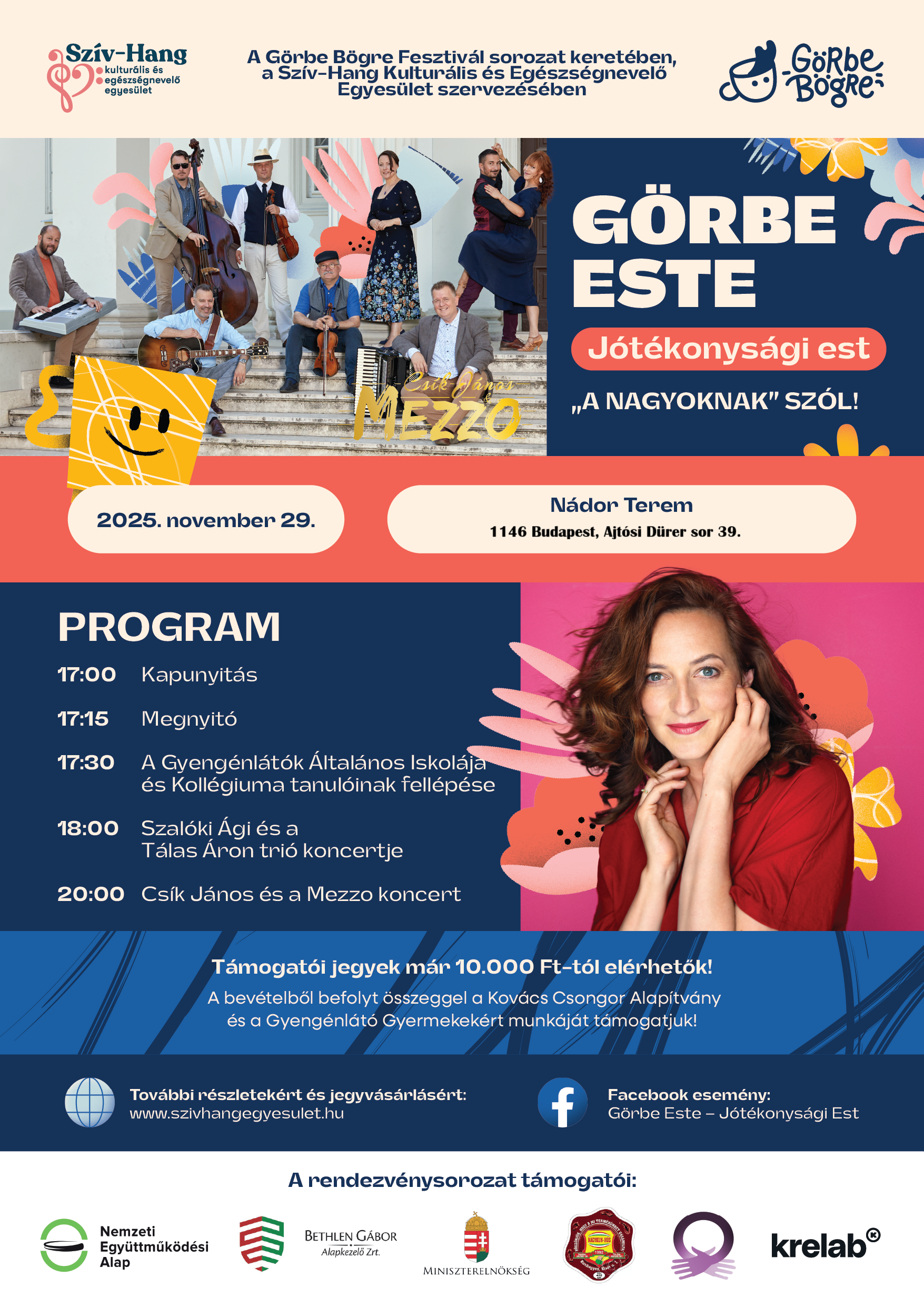 Támogatói jegy vásárolható a jegy.hu oldalon ll. Görbe Este – Jótékonysági est